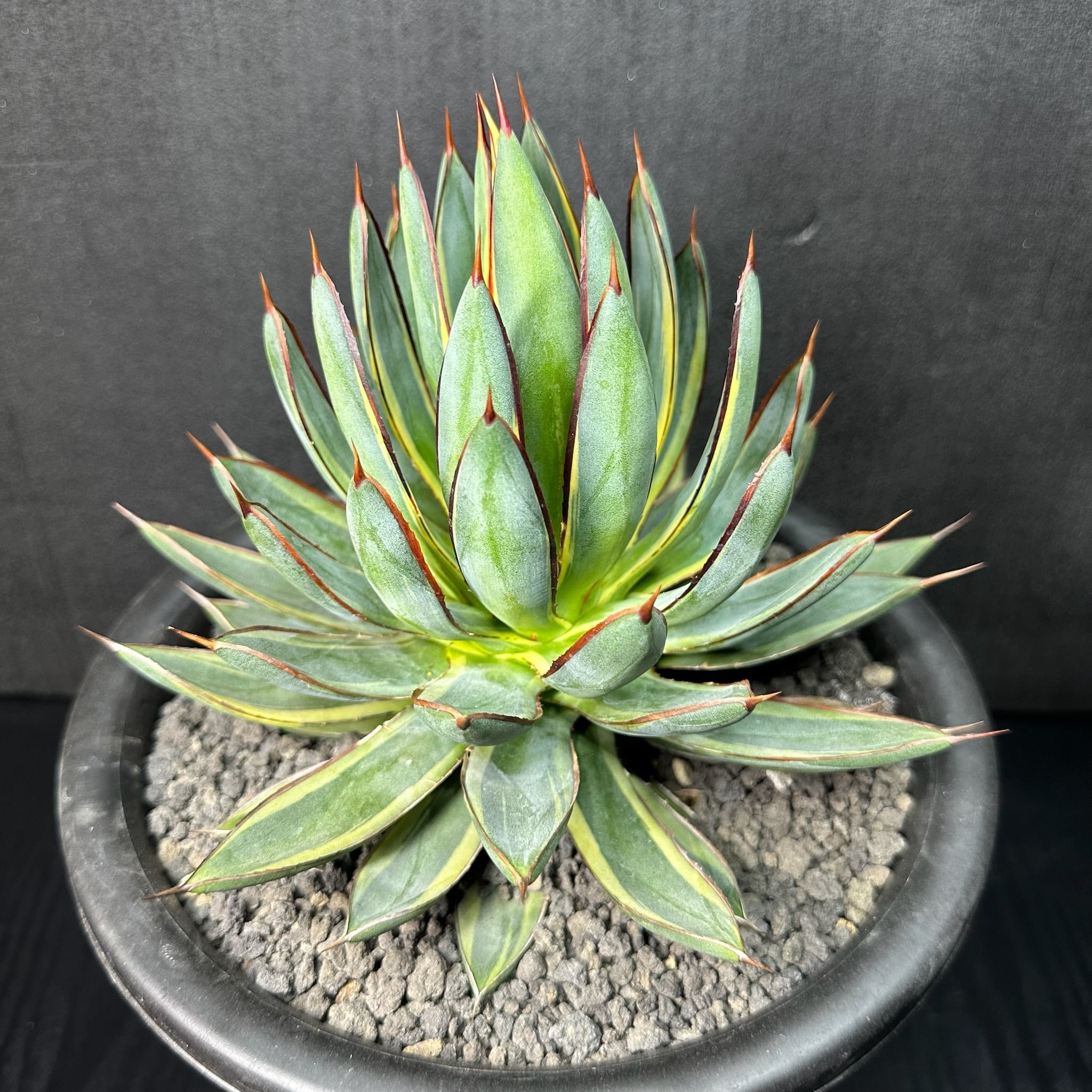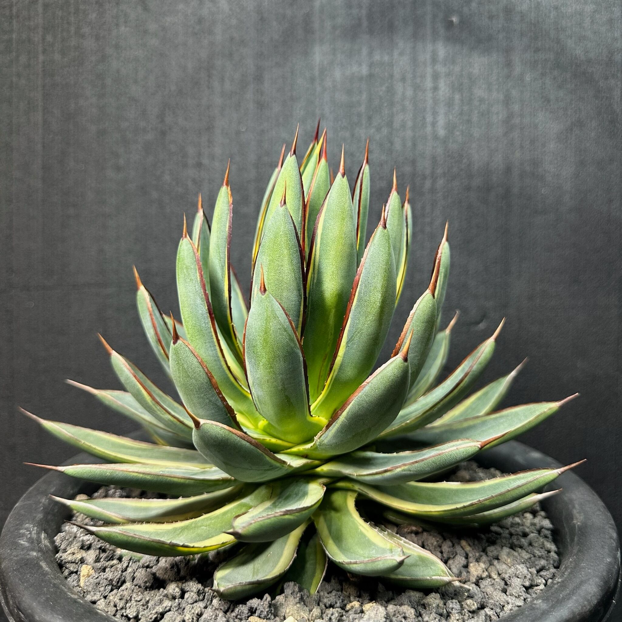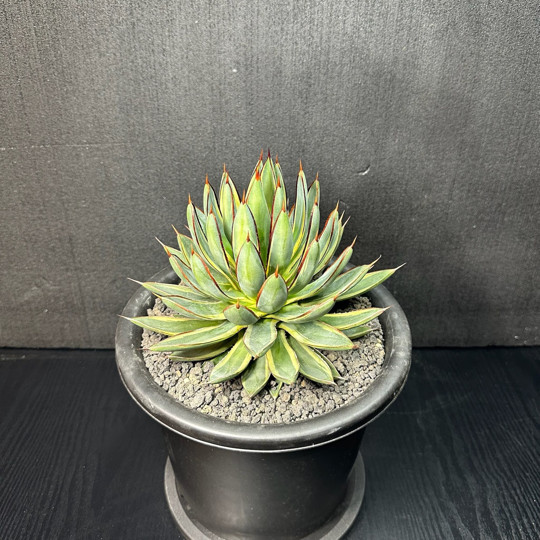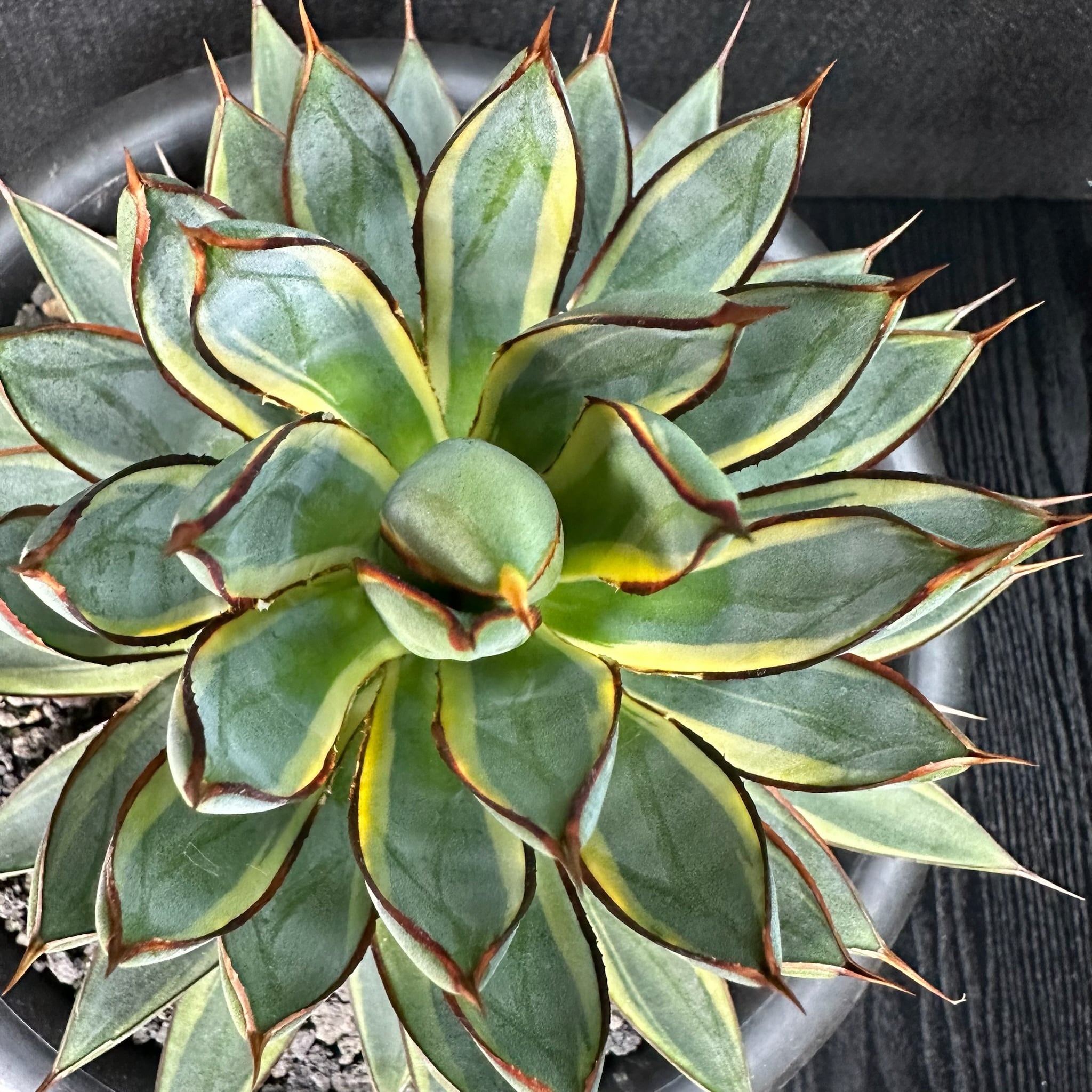 145 ビクトリア レジーナ × パルメリー (バーントバーガンディ(黄外斑)/ Victoriae reginae × Palmeri (Burnt burgundy (yellow marginata)