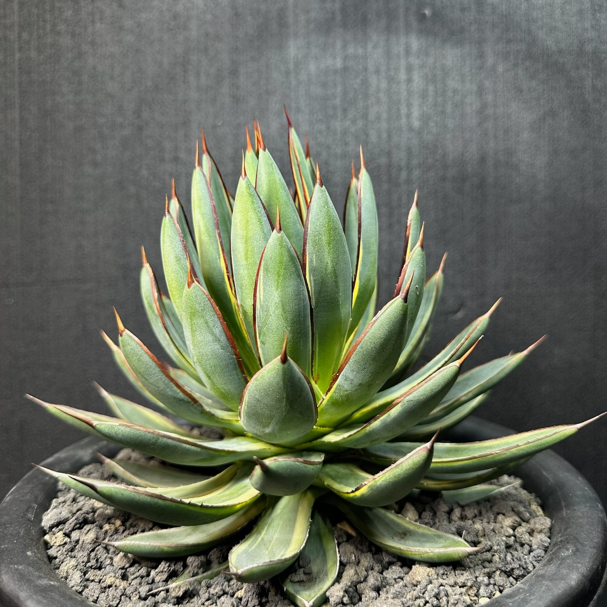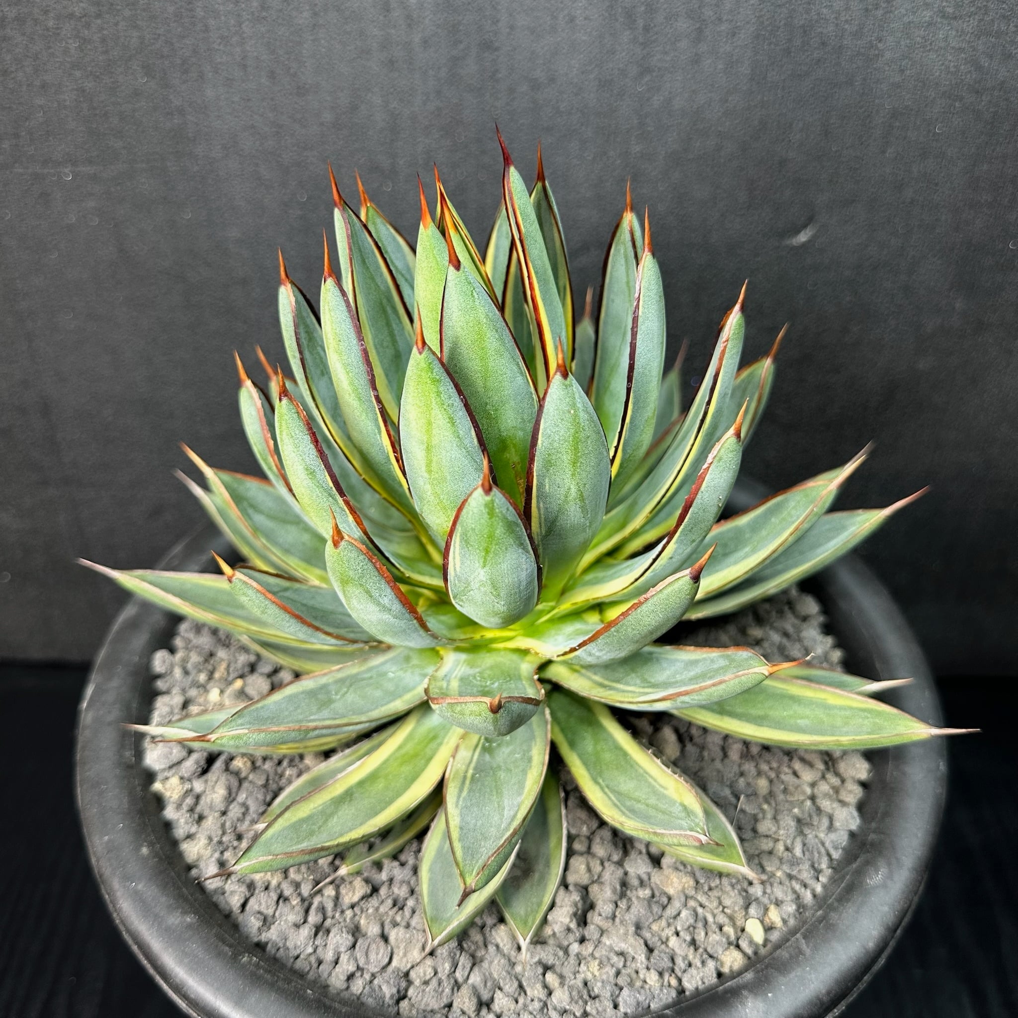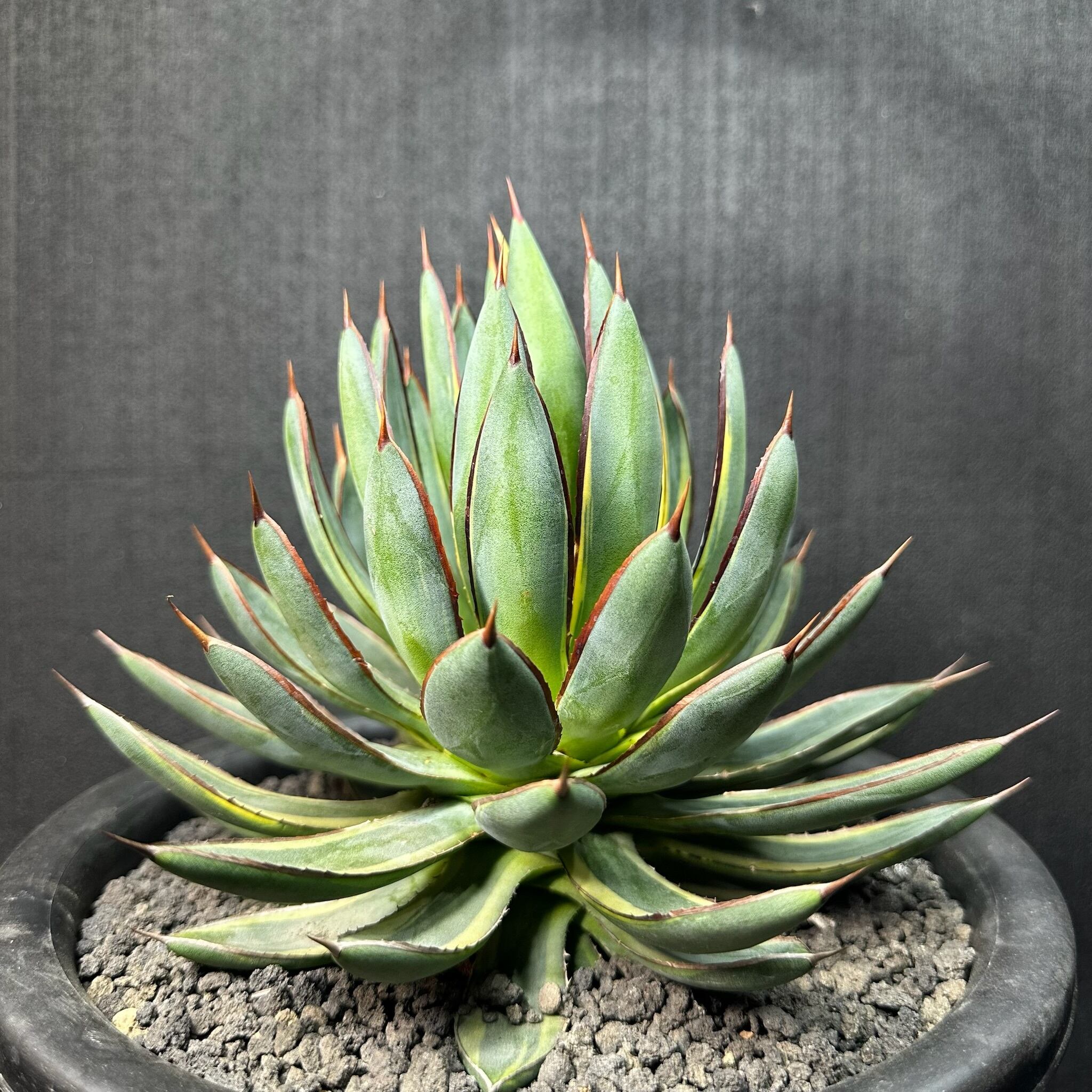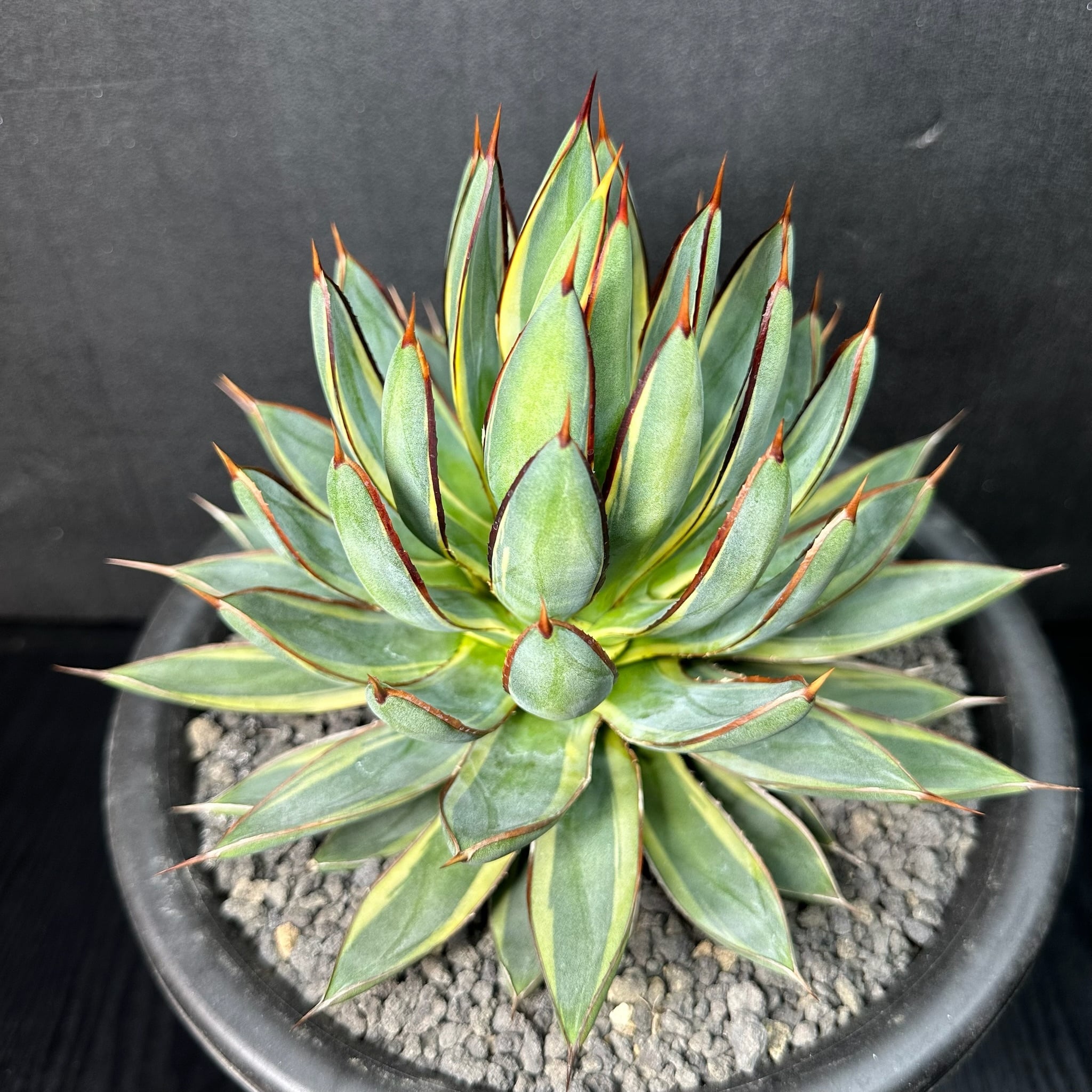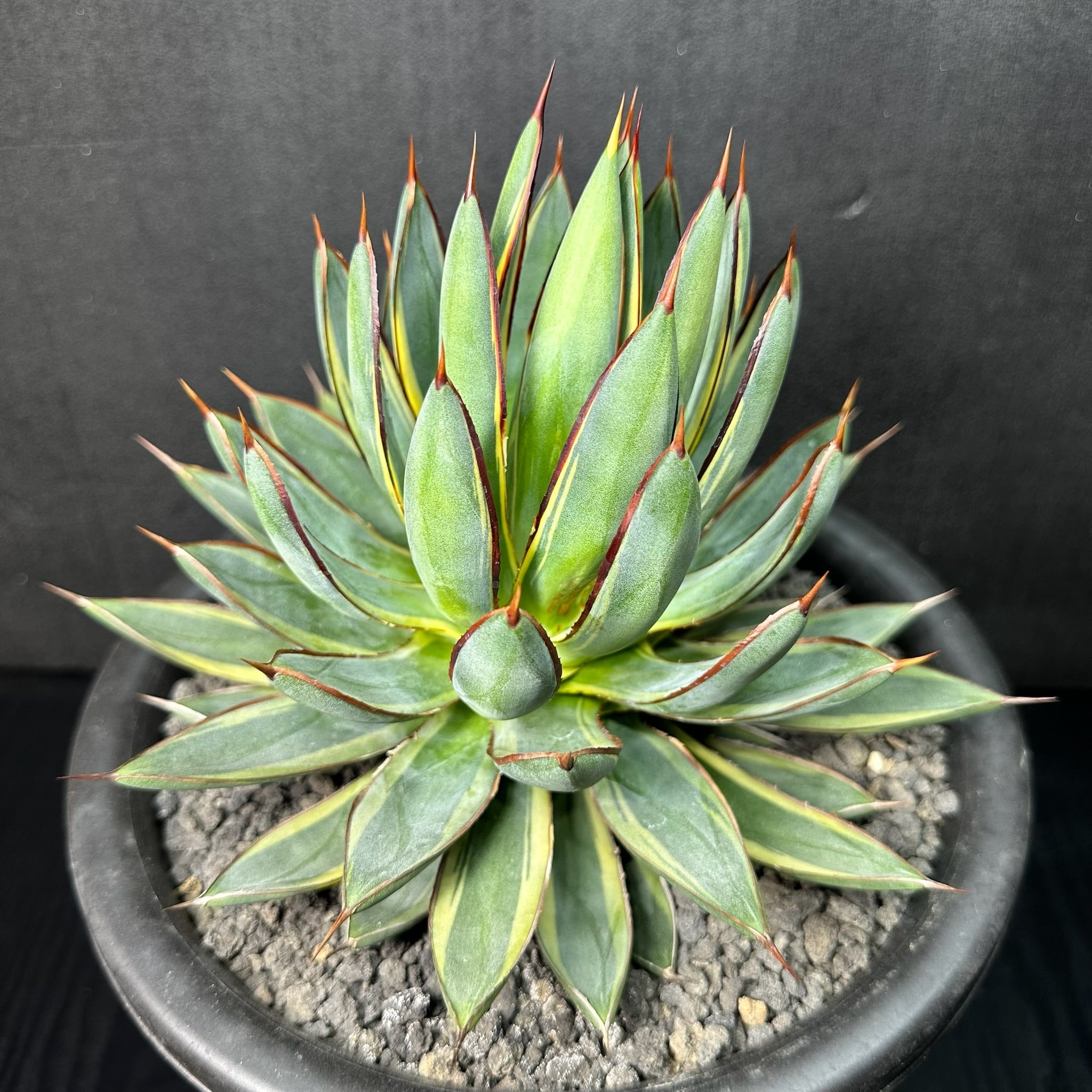 145 ビクトリア レジーナ × パルメリー (バーントバーガンディ(黄外斑)/ Victoriae reginae × Palmeri (Burnt burgundy (yellow marginata)