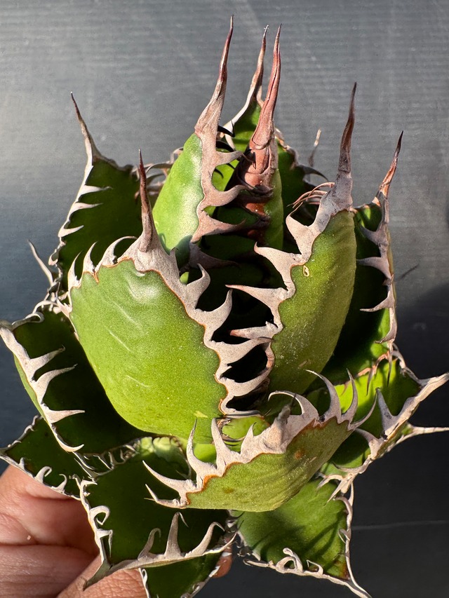【サイズ】 写真に写っているメジャーを参考にして下さい 【商品詳細】 アメリカより輸入 作者元のロイヤルアガベからの輸入 発根、活着済み 【発送方法】 ・輸送トラブルを避けるため鉢植えのものは基本的に抜き苗での発送となります 小苗や根の乾燥に弱い一部品種は鉢植えのまま発送となります ・佐川急便元払い ・基本的にはご注文→お支払い→入金確認後3〜4日で発送予定です 繁忙期等タイミングにより、最大で5日〜7日ほど頂く場合がありますのでご了承下さい ・リサイクル段ボールで発送させていただく場合がございます ・送料には梱包代、手間賃などを含みます 【注意事項】 ・ECサイトの仕組み上領収書の発行は致しておりませんので、購入時に届くメールと決済方法ごとの受領書などを合わせて領収書の代わりとしてご利用ください ・植物ですので日々変化します 商品到着時には掲載している写真と多少の変化がある場合がございます事ご了承下さい ・原則ご注文後の返品、返金は受け付けておりません ただし、商品の明らかな欠如など著しい状態の変化の場合は対応させて頂きますので、商品到着翌日までにご連絡下さい ・輸送トラブルによる商品のダメージ等につきましては、荷物到着後、運送会社の方へご連絡お願いします ☆商品が到着しましたら、お早めに箱の中をご確認ください